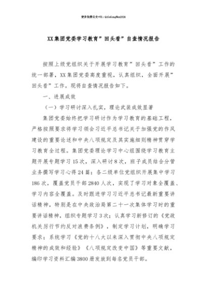 【七哥公文】2025年:【七哥公文】XX集团党委学习教育”回头看”自查情况报告+更多免费公文+VX:QiGeGongWen2024+更多免费公文+VX:QiGeGongWen2024