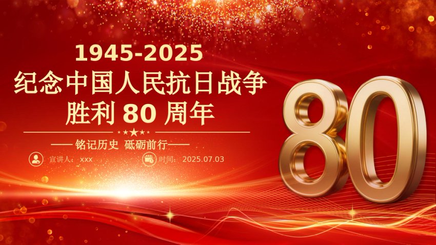 【七哥公文】2025年:【七哥公文】纪念中国人民抗日战争胜利80周年PPT铭记历史砥砺前行微党课PPT课件+更多免费公文+VX:QiGeGongWen2024+更多免费公文+VX:QiGeGongWen2024