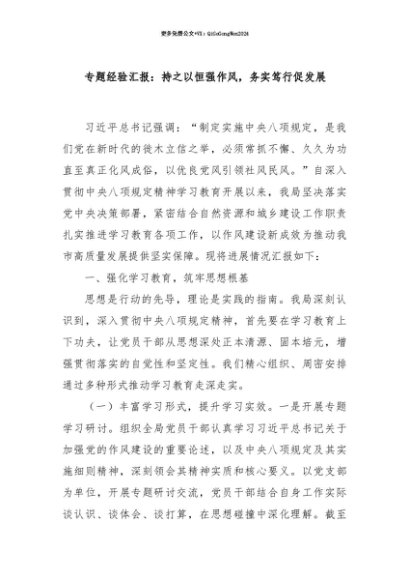 【七哥公文】2025年:【七哥公文】专题经验汇报:持之以恒强作风,务实笃行促发展+更多免费公文+VX:QiGeGongWen2024+更多免费公文+VX:QiGeGongWen2024