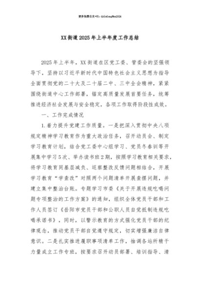 【七哥公文】2025年:【七哥公文】XX街道2025年上半年度工作总结+更多免费公文+VX:QiGeGongWen2024+更多免费公文+VX:QiGeGongWen2024