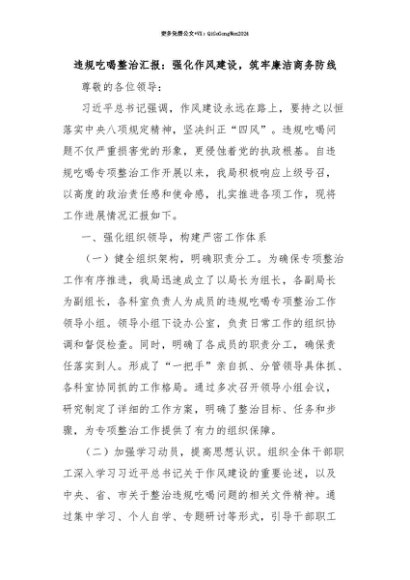 【七哥公文】2025年:【七哥公文】违规吃喝整治汇报:强化作风建设,筑牢廉洁商务防线+更多免费公文+VX:QiGeGongWen2024+更多免费公文+VX:QiGeGongWen2024
