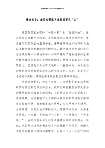 【七哥公文】2025年:【七哥公文】理论发言:基层治理数字化转型要求“实”+更多免费公文+VX:QiGeGongWen2024+更多免费公文+VX:QiGeGongWen2024