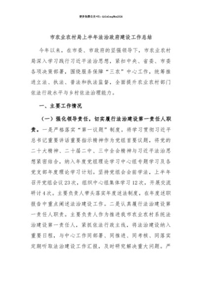 【七哥公文】2025年:【七哥公文】市农业农村局上半年法治政府建设工作总结+更多免费公文+VX:QiGeGongWen2024+更多免费公文+VX:QiGeGongWen2024