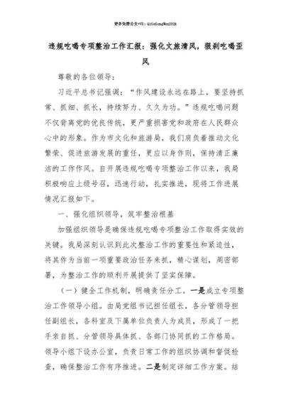 【七哥公文】2025年:【七哥公文】违规吃喝专项整治工作汇报:强化文旅清风,狠刹吃喝歪风+更多免费公文+VX:QiGeGongWen2024+更多免费公文+VX:QiGeGongWen2024