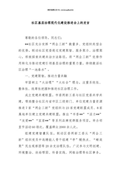 【七哥公文】2025年:【七哥公文】社区基层治理现代化建设推进会上的发言+更多免费公文+VX:QiGeGongWen2024+更多免费公文+VX:QiGeGongWen2024