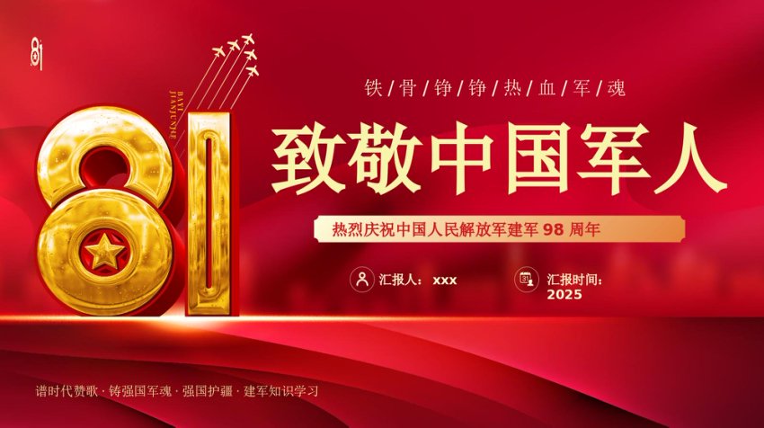 【七哥公文】2025年:【七哥公文】热烈庆祝中国人民解放军建军98周年PPT2025八一建军节党课课件+更多免费公文+VX:QiGeGongWen2024+更多免费公文+VX:QiGeGongWen2024