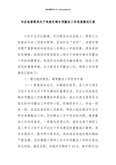 【七哥公文】2025年:【七哥公文】市应急管理局关于违规吃喝专项整治工作进展情况汇报+更多免费公文+VX:QiGeGongWen2024+更多免费公文+VX:QiGeGongWen2024