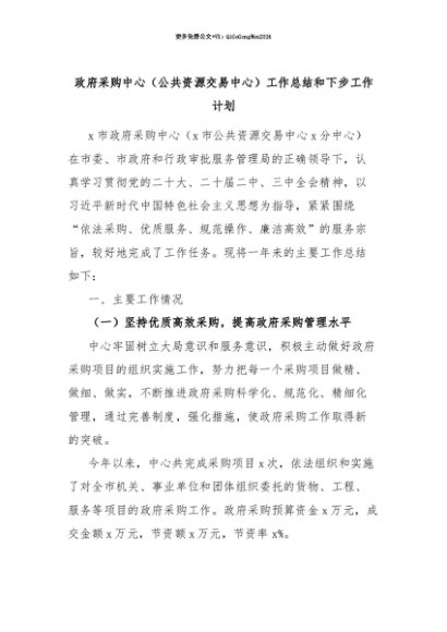 【七哥公文】2025年:【七哥公文】政府采购中心(公共资源交易中心)工作总结和下步工作计划+更多免费公文+VX:QiGeGongWen2024+更多免费公文+VX:QiGeGongWen2024