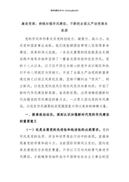 【七哥公文】2025年:【七哥公文】廉政党课:持续加强作风建设,不断把全面从严治党推向纵深+更多免费公文+VX:QiGeGongWen2024+更多免费公文+VX:QiGeGongWen2024