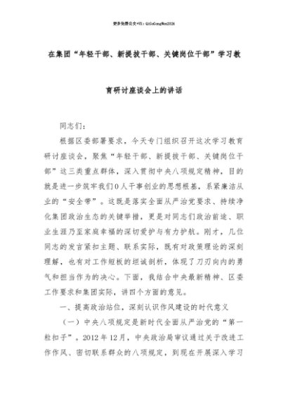 【七哥公文】2025年:【七哥公文】在集团“年轻干部、新提拔干部、关键岗位干部”学习教育研讨座谈会上的讲话+更多免费公文+VX:QiGeGongWen2024+更多免费公文+VX:QiGeGongWen2024