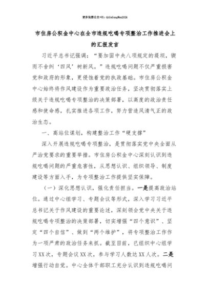 【七哥公文】2025年:【七哥公文】市住房公积金中心在全市违规吃喝专项整治工作推进会上的汇报发言+更多免费公文+VX:QiGeGongWen2024+更多免费公文+VX:QiGeGongWen2024