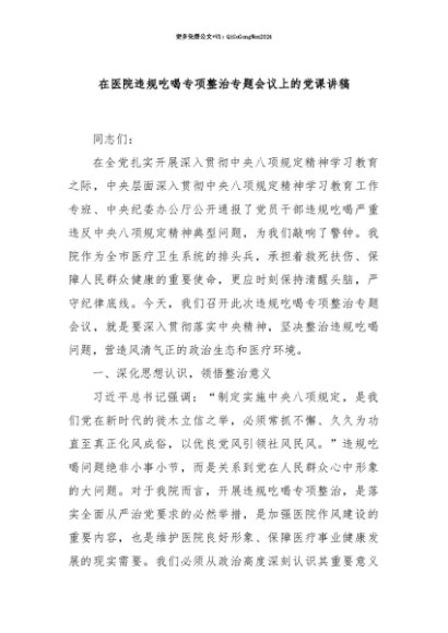 【七哥公文】2025年:【七哥公文】在医院违规吃喝专项整治专题会议上的党课讲稿+更多免费公文+VX:QiGeGongWen2024+更多免费公文+VX:QiGeGongWen2024