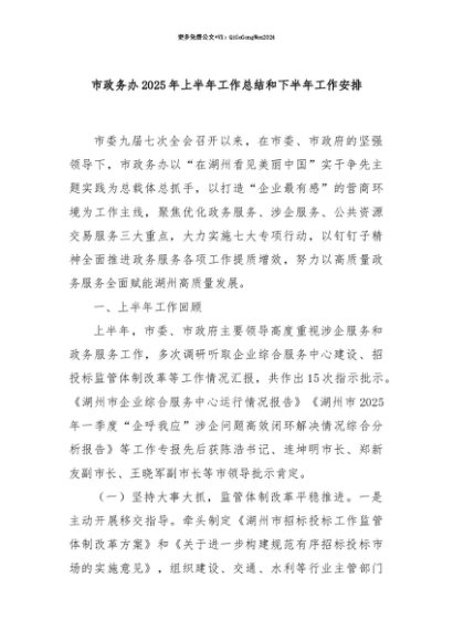 【七哥公文】2025年:【七哥公文】市政务办2025年上半年工作总结和下半年工作安排+更多免费公文+VX:QiGeGongWen2024+更多免费公文+VX:QiGeGongWen2024