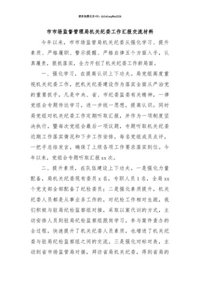 【七哥公文】2025年:【七哥公文】市市场监督管理局机关纪委工作汇报交流材料+更多免费公文+VX:QiGeGongWen2024+更多免费公文+VX:QiGeGongWen2024