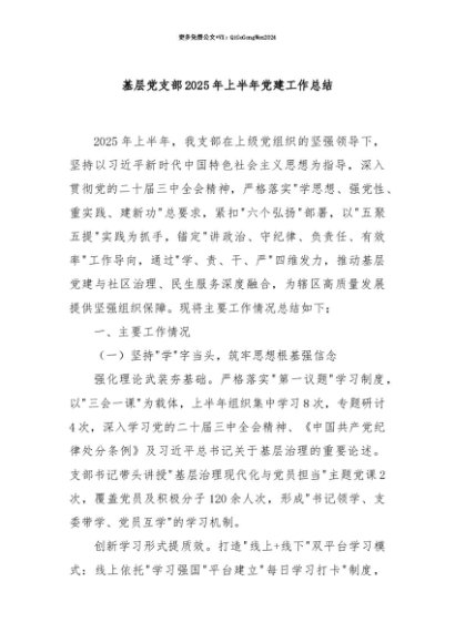 【七哥公文】2025年:【七哥公文】基层党支部2025年上半年党建工作总结+更多免费公文+VX:QiGeGongWen2024+更多免费公文+VX:QiGeGongWen2024