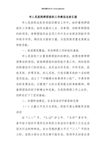 【七哥公文】2025年:【七哥公文】市人民医院群团组织工作建设总结汇报+更多免费公文+VX:QiGeGongWen2024+更多免费公文+VX:QiGeGongWen2024