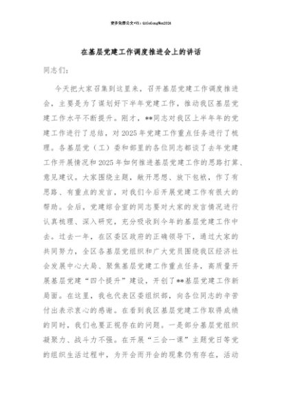 【七哥公文】2025年:【七哥公文】在基层党建工作调度推进会上的讲话+更多免费公文+VX:QiGeGongWen2024+更多免费公文+VX:QiGeGongWen2024