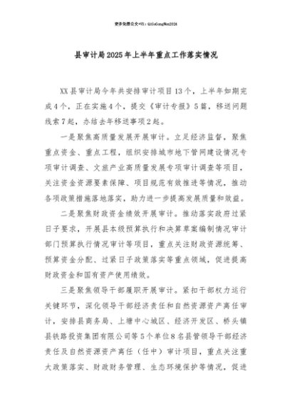 【七哥公文】2025年:【七哥公文】县审计局2025年上半年重点工作落实情况+更多免费公文+VX:QiGeGongWen2024+更多免费公文+VX:QiGeGongWen2024