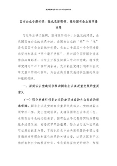 【七哥公文】2025年:【七哥公文】国有企业专题党课:强化党建引领,推动国有企业高质量发展+更多免费公文+VX:QiGeGongWen2024+更多免费公文+VX:QiGeGongWen2024