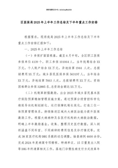 【七哥公文】2025年:【七哥公文】区医保局2025年上半年工作总结及下半年重点工作安排+更多免费公文+VX:QiGeGongWen2024+更多免费公文+VX:QiGeGongWen2024