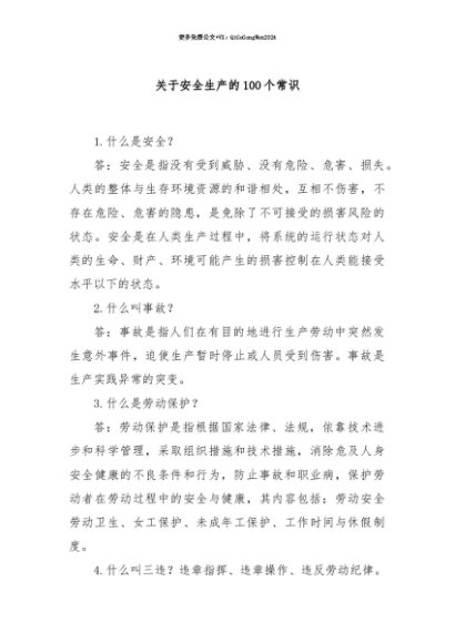 【七哥公文】2025年:【七哥公文】关于安全生产的100个常识+更多免费公文+VX:QiGeGongWen2024+更多免费公文+VX:QiGeGongWen2024