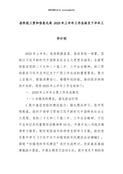 【七哥公文】2025年:【七哥公文】县科技工贸和信息化局 2025年上半年工作总结及下半年工作计划+更多免费公文+VX:QiGeGongWen2024+更多免费公文+VX:QiGeGongWen2024