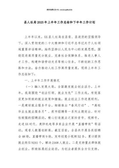 【七哥公文】2025年:【七哥公文】县人社局2025年上半年工作总结和下半年工作计划+更多免费公文+VX:QiGeGongWen2024+更多免费公文+VX:QiGeGongWen2024