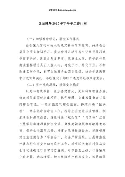 【七哥公文】2025年:【七哥公文】区住建局2025年下半年工作计划+更多免费公文+VX:QiGeGongWen2024+更多免费公文+VX:QiGeGongWen2024
