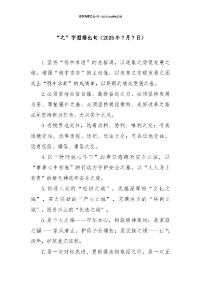 【七哥公文】2025年:【七哥公文】“之”字型排比句(2025年7月7日)+更多免费公文+VX:QiGeGongWen2024+更多免费公文+VX:QiGeGongWen2024