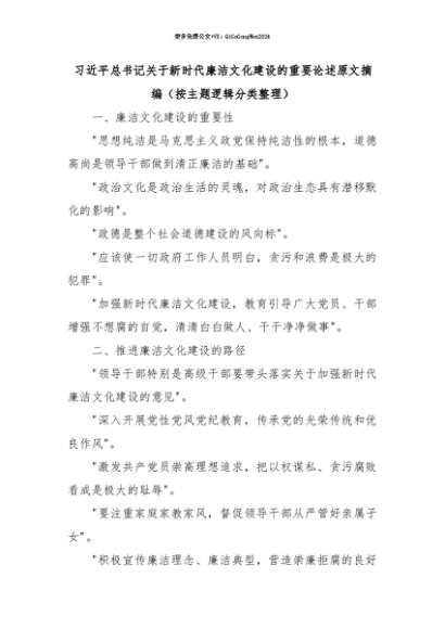 【七哥公文】2025年:【七哥公文】习近平总书记关于新时代廉洁文化建设的重要论述原文摘编(按主题逻辑分类整理)+更多免费公文+VX:QiGeGongWen2024+更多免费公文+VX:QiGeGongWen2024