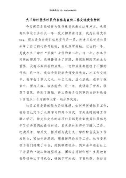 【七哥公文】2025年:【七哥公文】九三学社优秀社员代表信息宣传工作交流发言材料+更多免费公文+VX:QiGeGongWen2024+更多免费公文+VX:QiGeGongWen2024