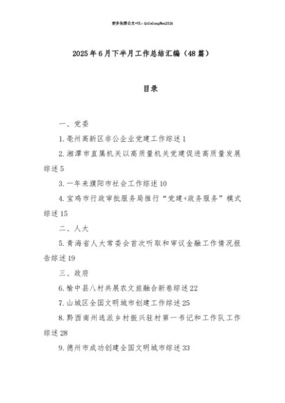 【七哥公文】2025年:【七哥公文】(48篇)2025年6月下半月工作总结汇编+更多免费公文+VX:QiGeGongWen2024+更多免费公文+VX:QiGeGongWen2024