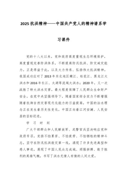 【七哥公文】2025年:【七哥公文】2025抗洪精神——中国共产党人的精神谱系学习课件+更多免费公文+VX:QiGeGongWen2024+更多免费公文+VX:QiGeGongWen2024