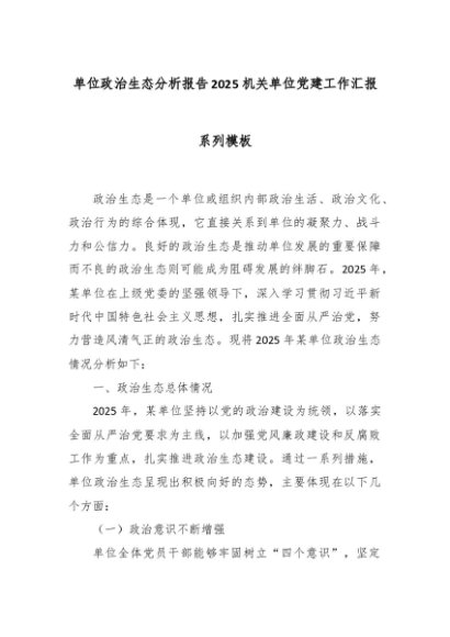 【七哥公文】2025年:【七哥公文】单位政治生态分析报告2025机关单位党建工作汇报系列模板+更多免费公文+VX:QiGeGongWen2024+更多免费公文+VX:QiGeGongWen2024