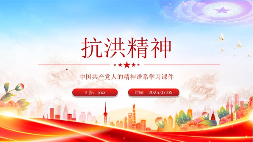 【七哥公文】2025年:【七哥公文】2025抗洪精神PPT简洁大气中国共产党人的精神谱系课件+更多免费公文+VX:QiGeGongWen2024+更多免费公文+VX:QiGeGongWen2024