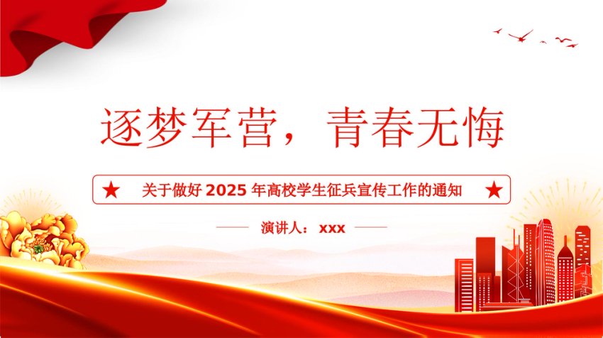 【七哥公文】2025年:【七哥公文】关于做好2025年高校学生征兵宣传工作的通知PPT课件模板+更多免费公文+VX:QiGeGongWen2024+更多免费公文+VX:QiGeGongWen2024