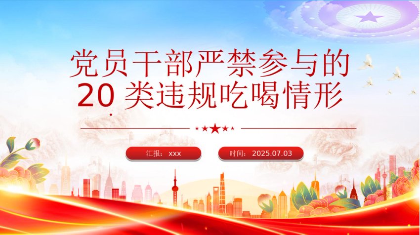 【七哥公文】2025年:【七哥公文】一文读懂党员干部严禁参与的20类违规吃喝情形PPT课件+更多免费公文+VX:QiGeGongWen2024+更多免费公文+VX:QiGeGongWen2024
