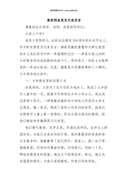 【七哥公文】2025年:【七哥公文】高校预备党员代表发言+更多免费公文+VX:QiGeGongWen2024+更多免费公文+VX:QiGeGongWen2024