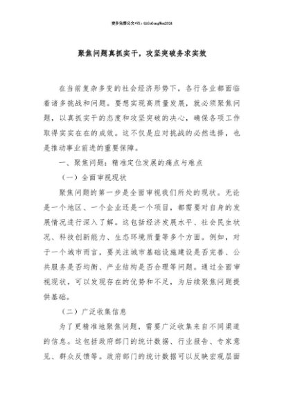 【七哥公文】2025年:【七哥公文】聚焦问题真抓实干,攻坚突破务求实效+更多免费公文+VX:QiGeGongWen2024+更多免费公文+VX:QiGeGongWen2024