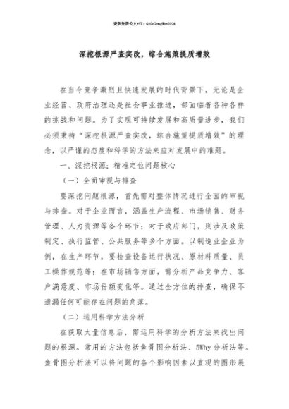 【七哥公文】2025年:【七哥公文】深挖根源严查实改,综合施策提质增效+更多免费公文+VX:QiGeGongWen2024+更多免费公文+VX:QiGeGongWen2024