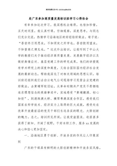 【七哥公文】2025年:【七哥公文】赴广东参加高质量发展培训班学习心得体会+更多免费公文+VX:QiGeGongWen2024+更多免费公文+VX:QiGeGongWen2024