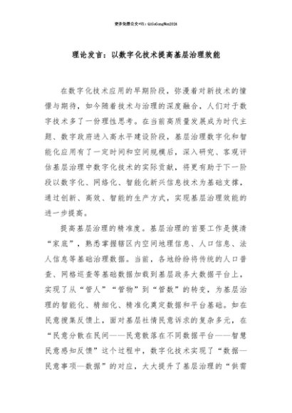 【七哥公文】2025年:【七哥公文】理论发言:以数字化技术提高基层治理效能+更多免费公文+VX:QiGeGongWen2024+更多免费公文+VX:QiGeGongWen2024