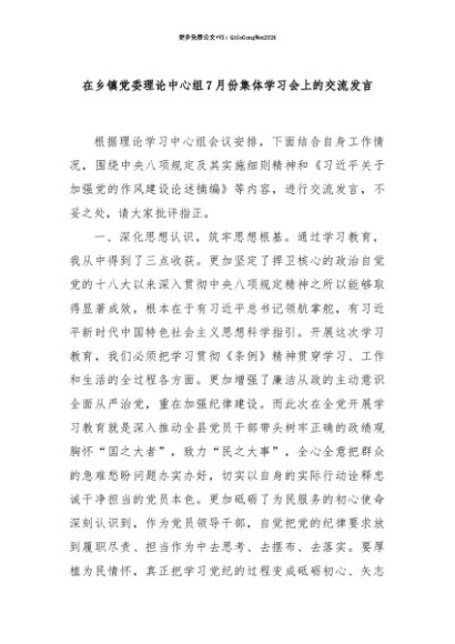 【七哥公文】2025年:【七哥公文】在乡镇党委理论中心组7月份集体学习会上的交流发言+更多免费公文+VX:QiGeGongWen2024+更多免费公文+VX:QiGeGongWen2024