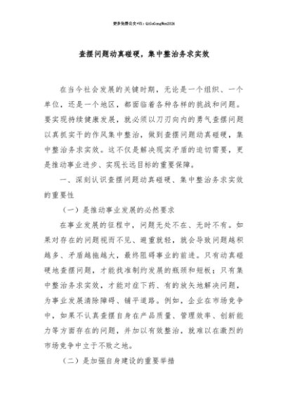 【七哥公文】2025年:【七哥公文】查摆问题动真碰硬,集中整治务求实效+更多免费公文+VX:QiGeGongWen2024+更多免费公文+VX:QiGeGongWen2024