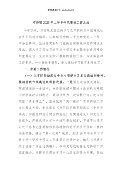 【七哥公文】2025年:【七哥公文】市侨联2025年上半年作风建设工作总结+更多免费公文+VX:QiGeGongWen2024+更多免费公文+VX:QiGeGongWen2024