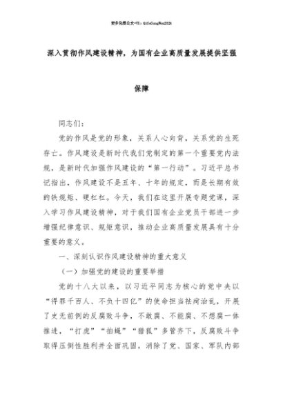 【七哥公文】2025年:【七哥公文】深入贯彻作风建设精神,为国有企业高质量发展提供坚强保障+更多免费公文+VX:QiGeGongWen2024+更多免费公文+VX:QiGeGongWen2024