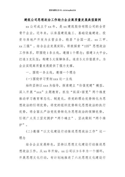 【七哥公文】2025年:【七哥公文】建筑公司思想政治工作助力企业高质量发展典型案例+更多免费公文+VX:QiGeGongWen2024+更多免费公文+VX:QiGeGongWen2024
