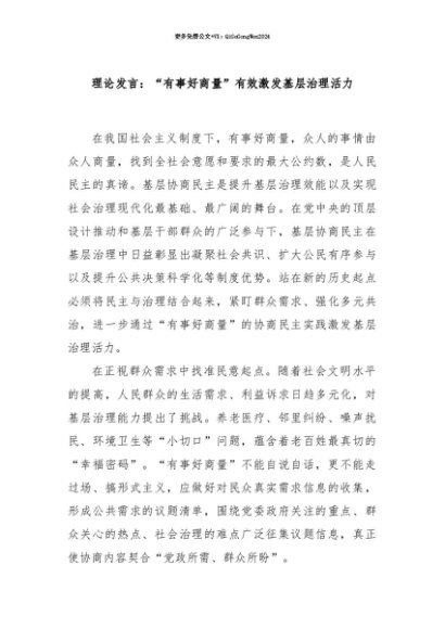 【七哥公文】2025年:【七哥公文】理论发言:“有事好商量”有效激发基层治理活力+更多免费公文+VX:QiGeGongWen2024+更多免费公文+VX:QiGeGongWen2024