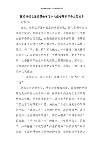 【七哥公文】2025年:【七哥公文】区委书记在党委理论学习中心组专题学习会上的发言+更多免费公文+VX:QiGeGongWen2024+更多免费公文+VX:QiGeGongWen2024