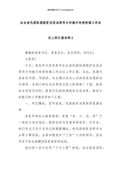 【七哥公文】2025年:【七哥公文】在全省巩固拓展脱贫攻坚成果同乡村振兴有效衔接工作会议上的汇报材料2+更多免费公文+VX:QiGeGongWen2024+更多免费公文+VX:QiGeGongWen2024